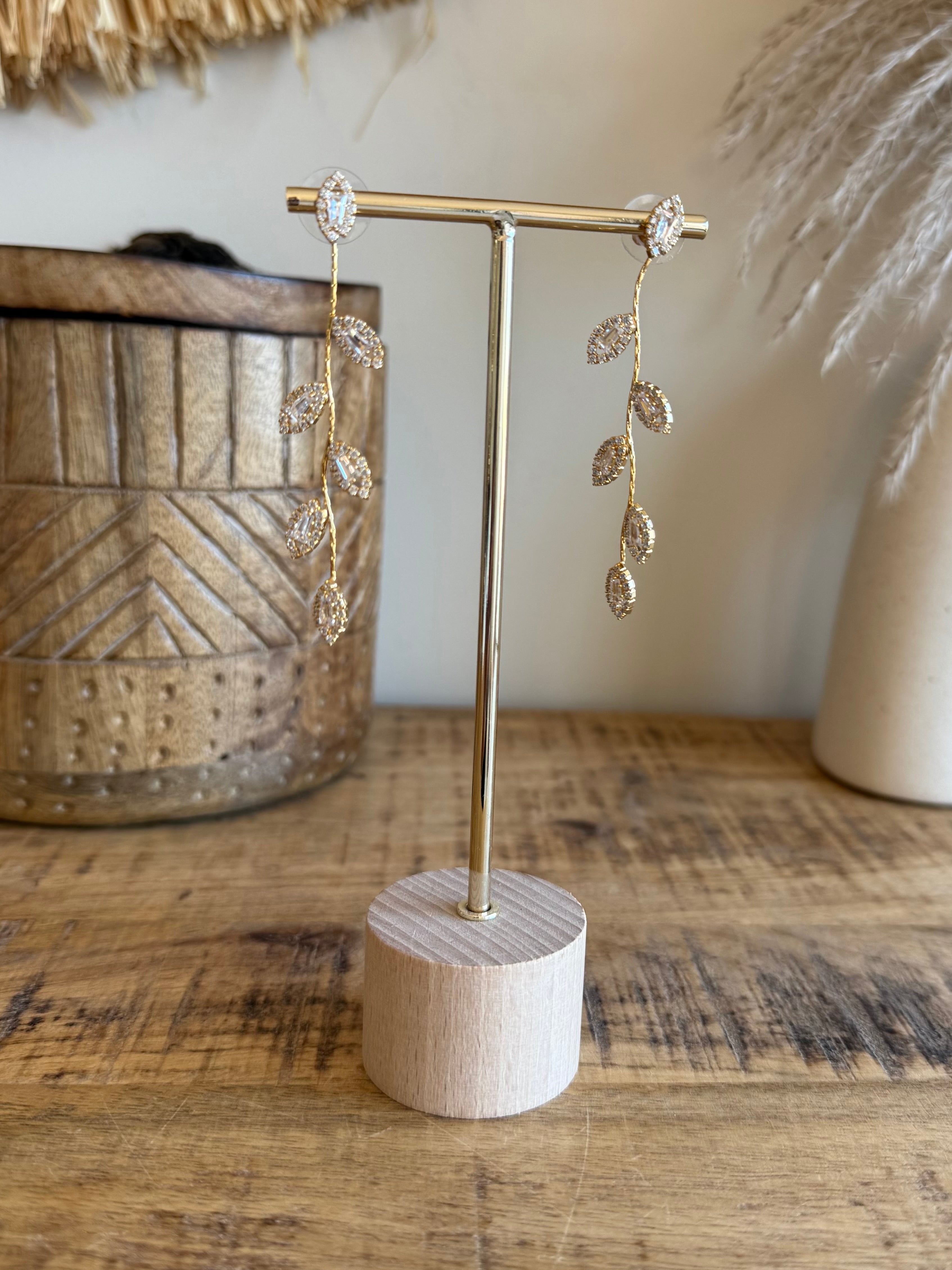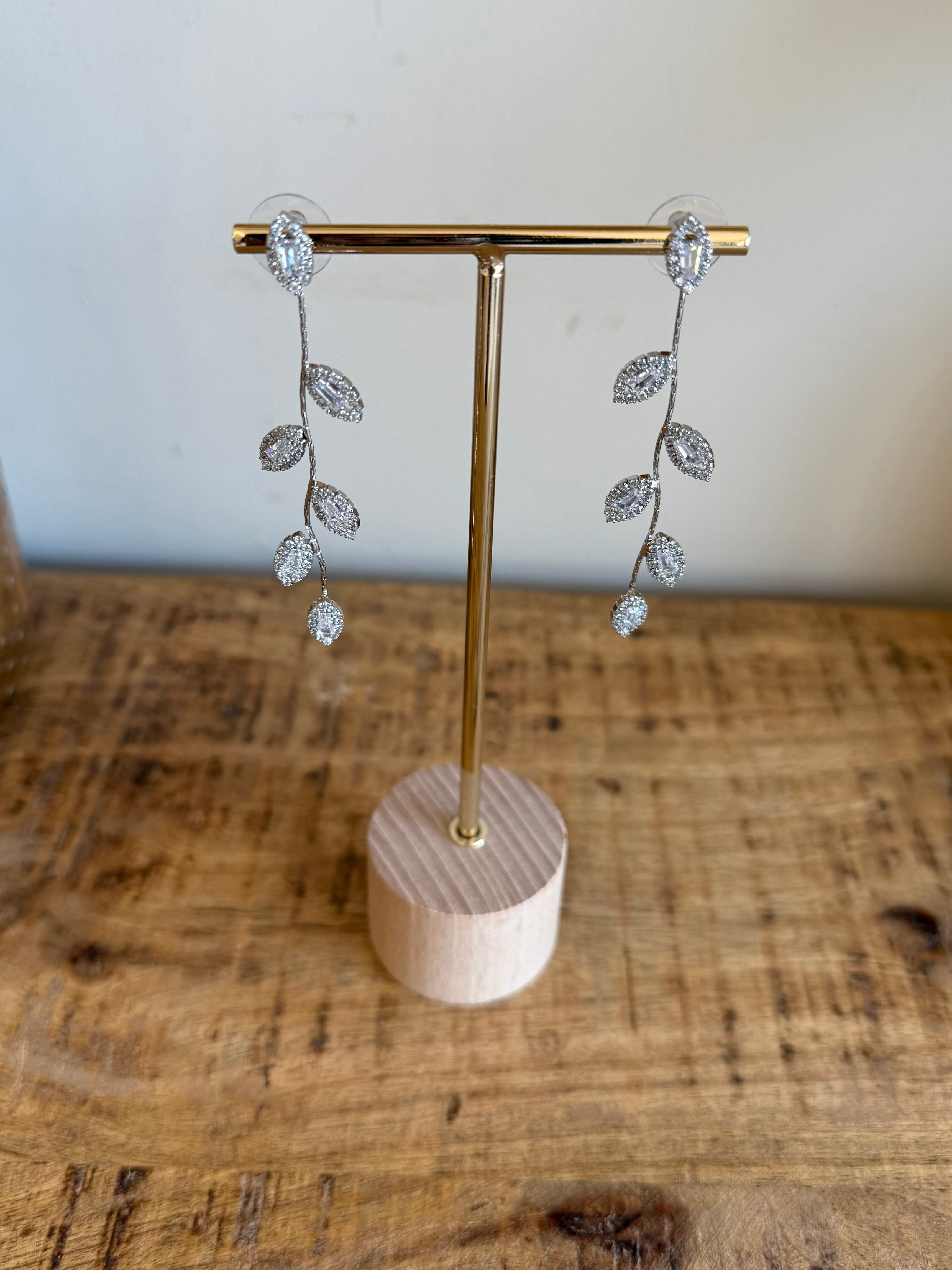 Pendientes largos con diseño de ramita de hojas, llenos de brillo y súper elegantes.