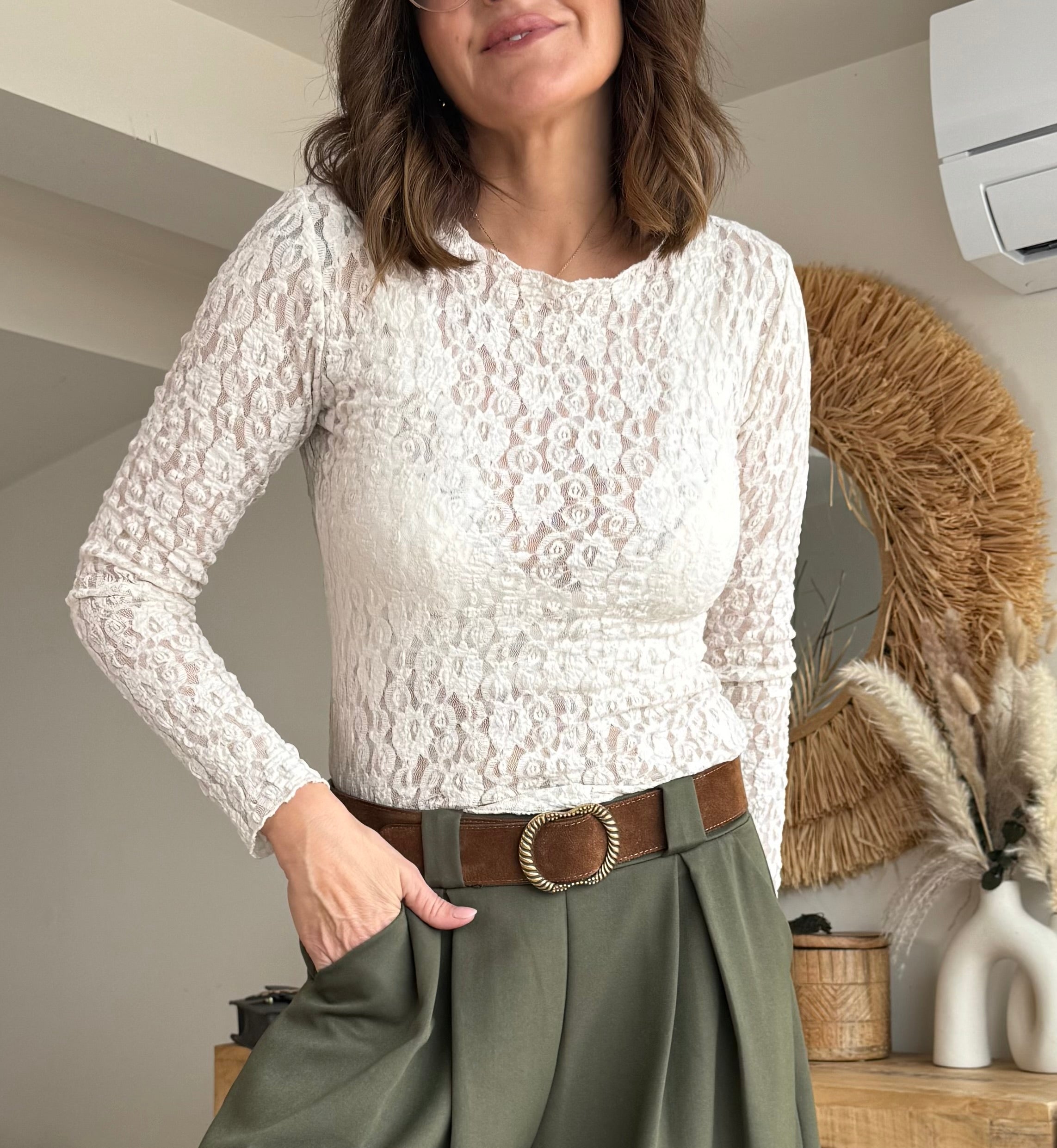 Nuestra Camiseta Encaje Floral Second Skin es esa prenda que eleva cualquier look sin esfuerzo. Su tejido elástico de encaje suave se adapta al cuerpo como una segunda piel, realzando la silueta con un toque femenino y sofisticado.