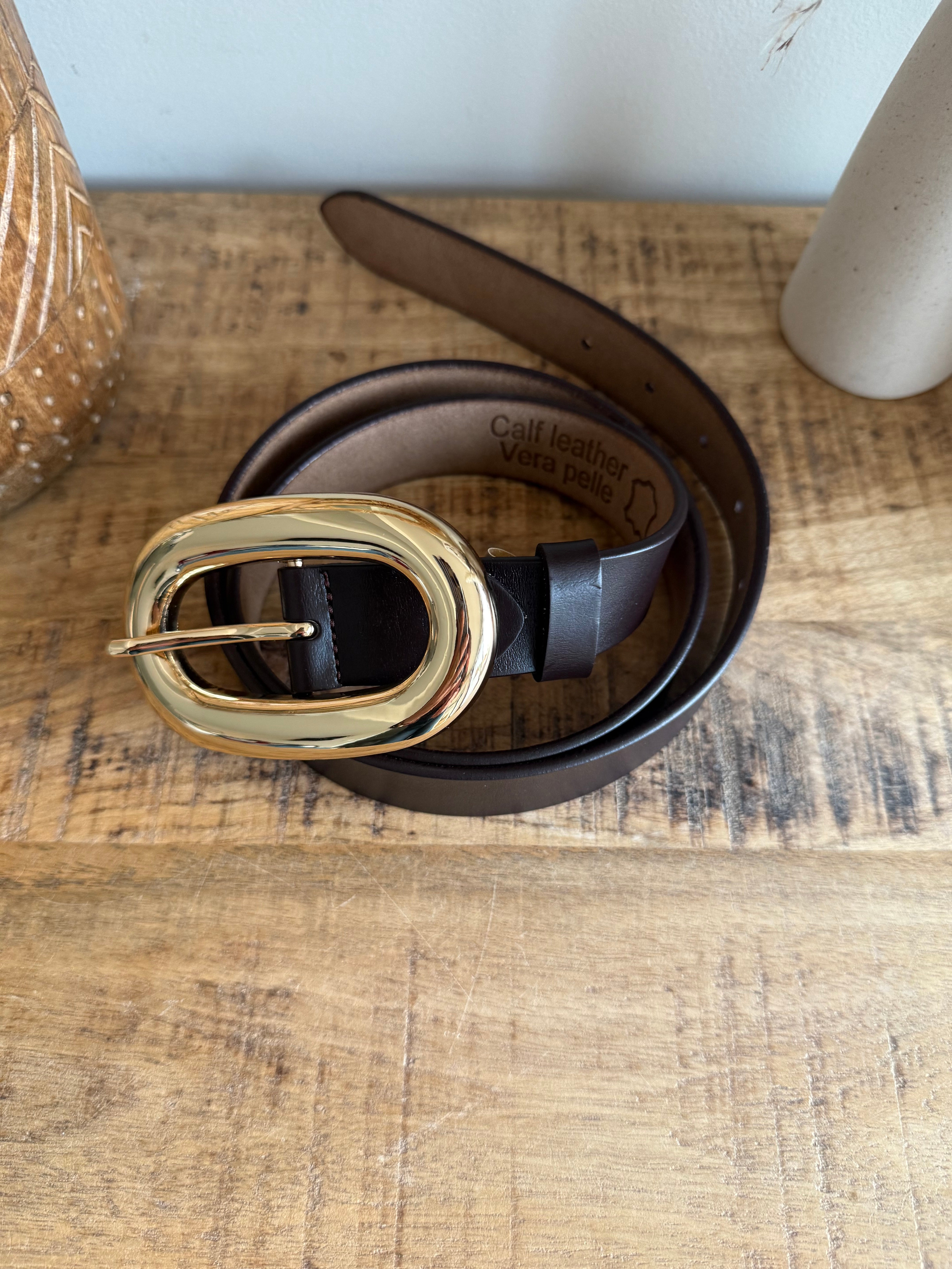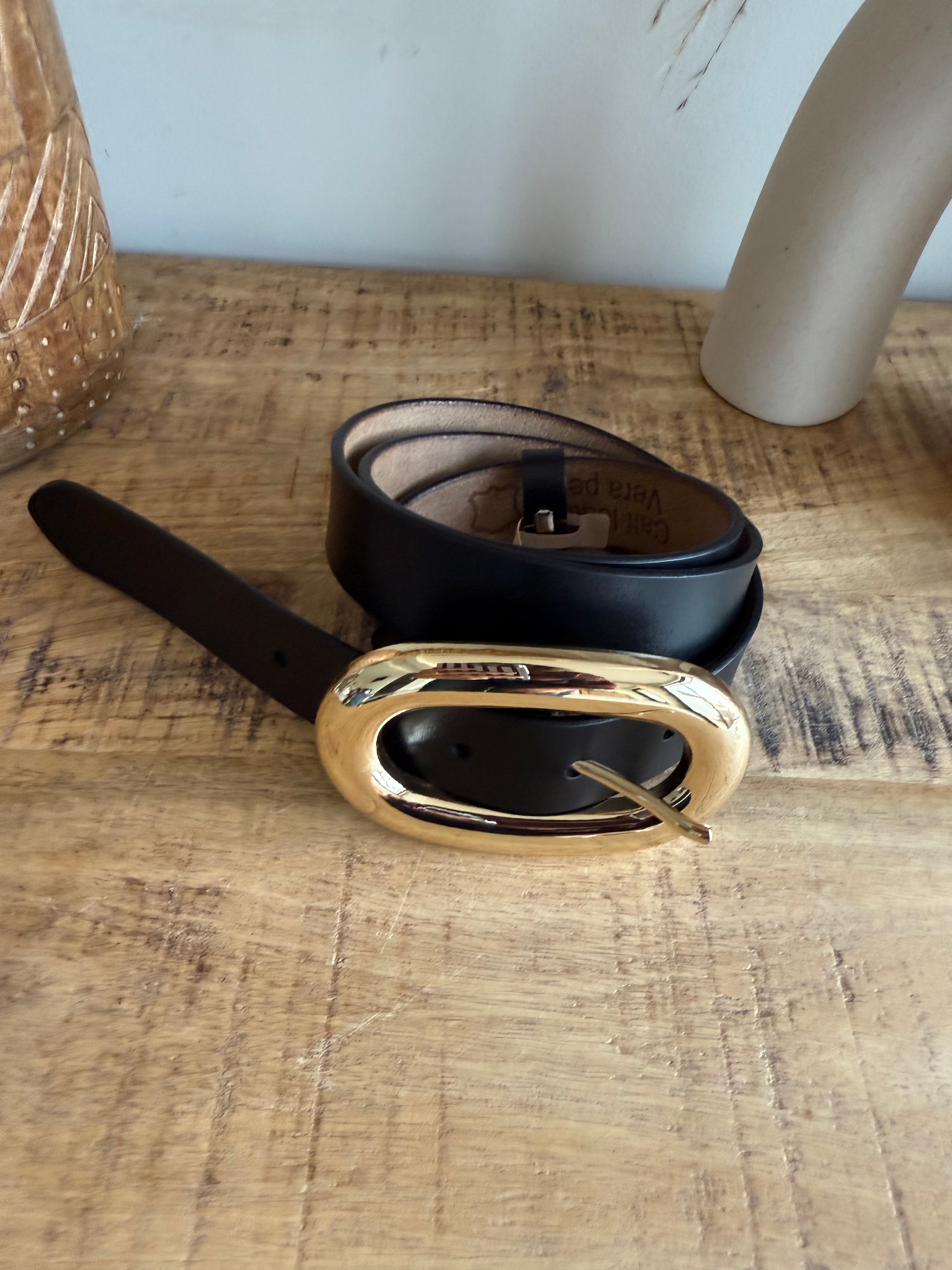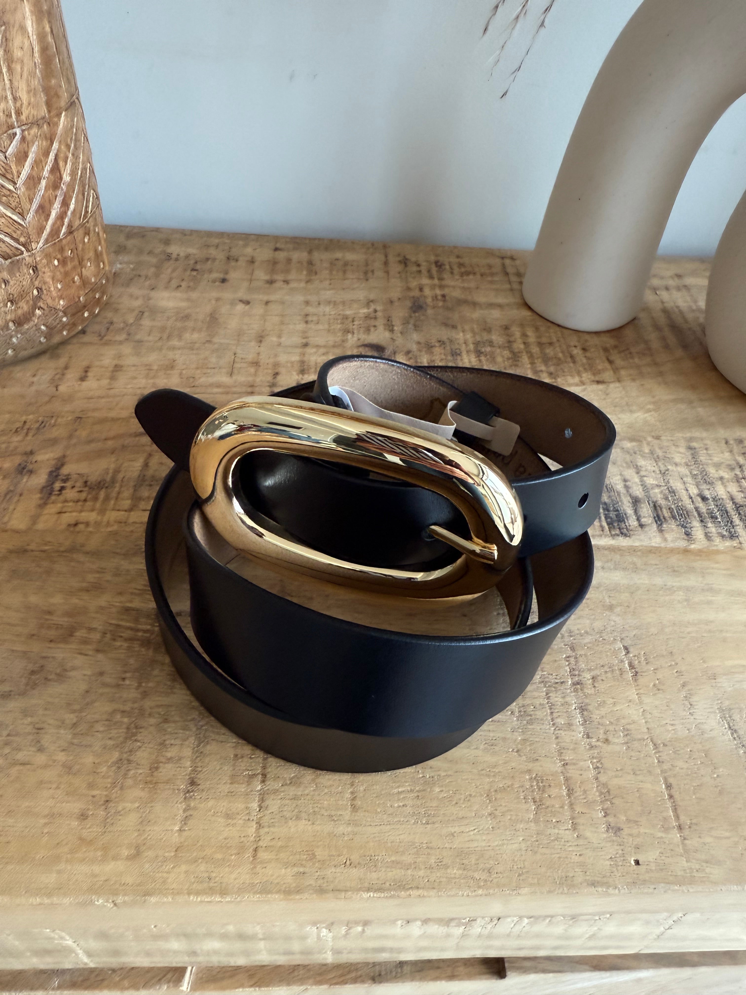 La hebilla dorada, con forma orgánica y brillante, aporta un toque sofisticado que combina con todo: jeans, vestidos, trajes o faldas.