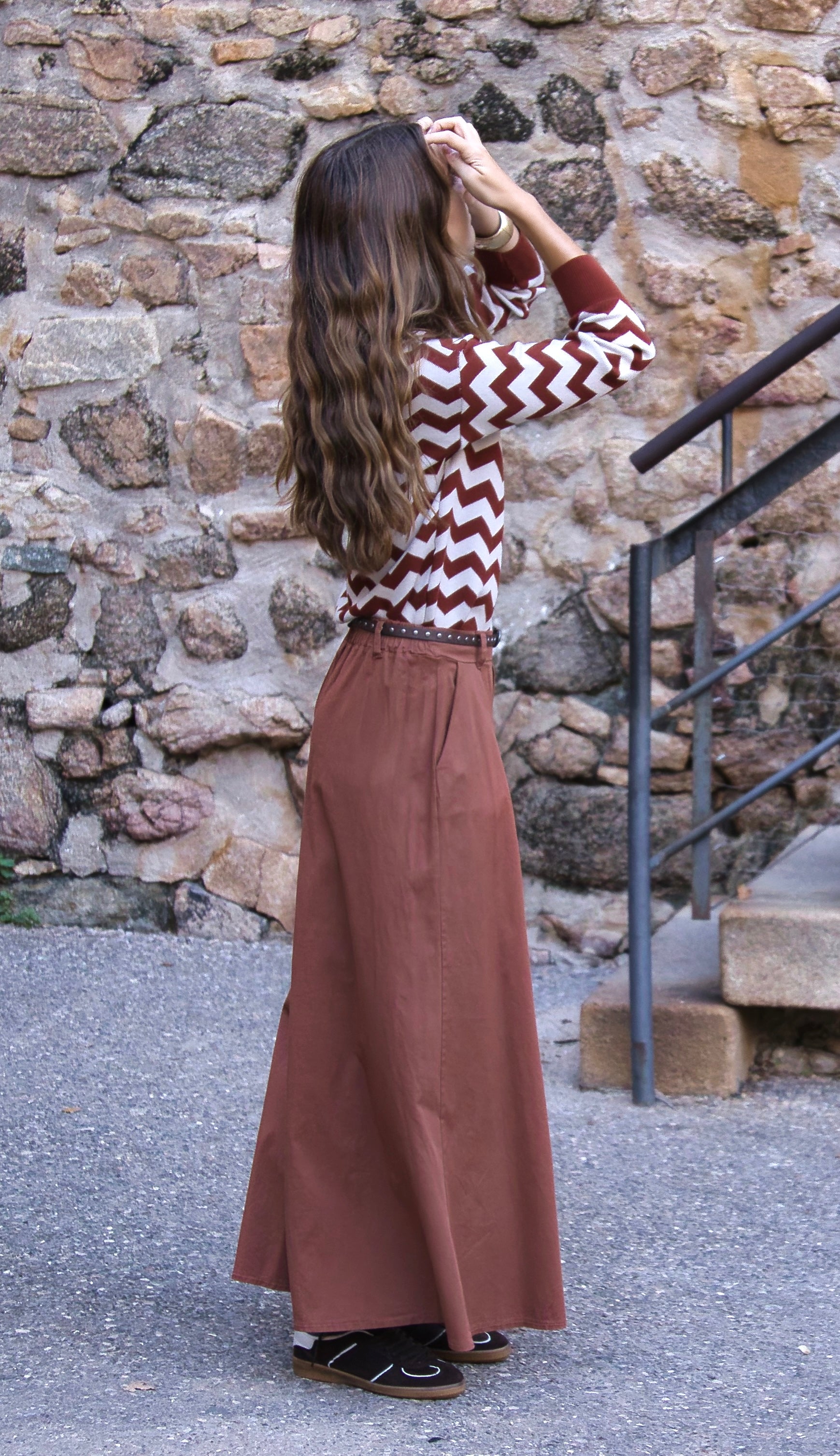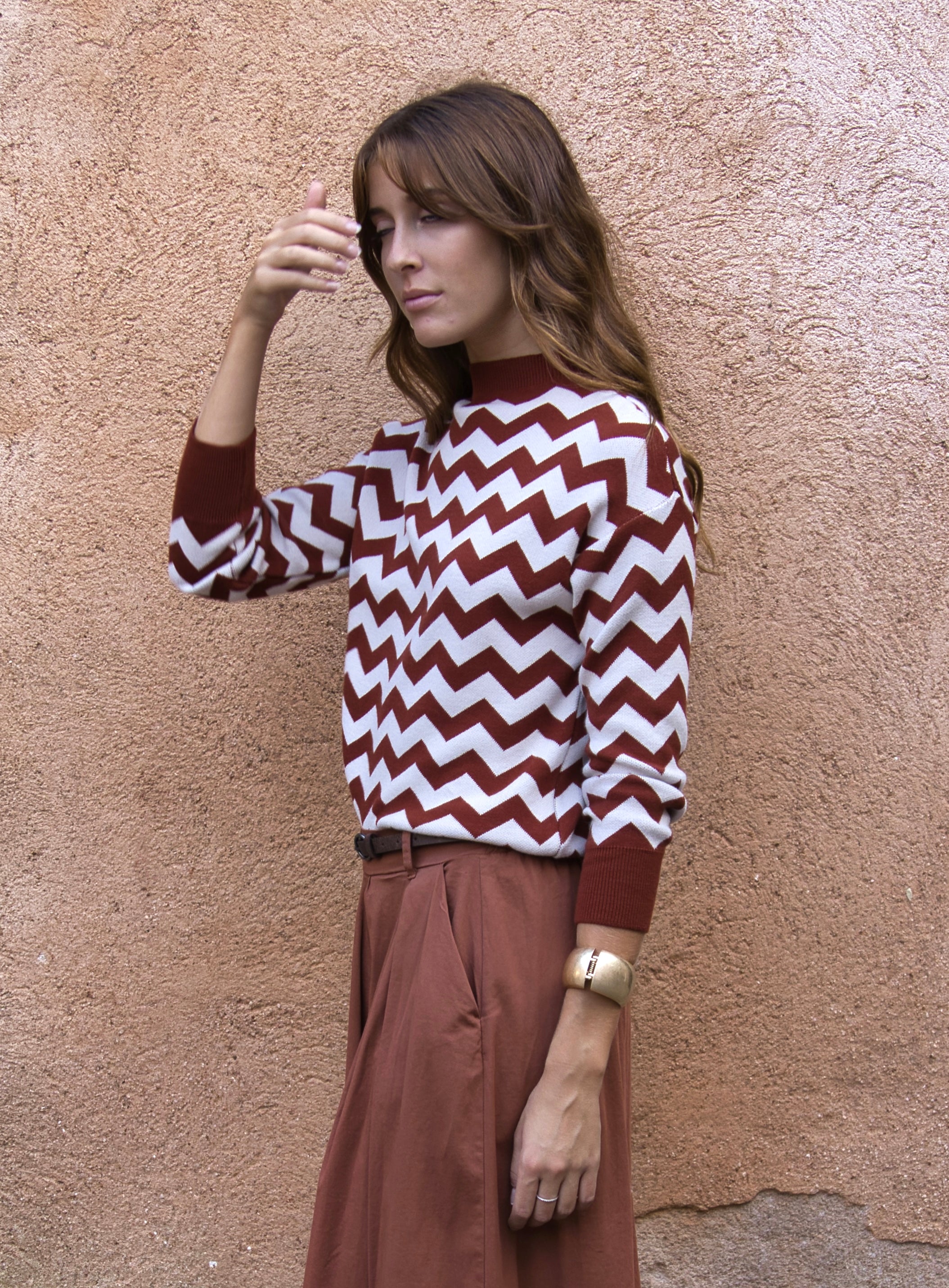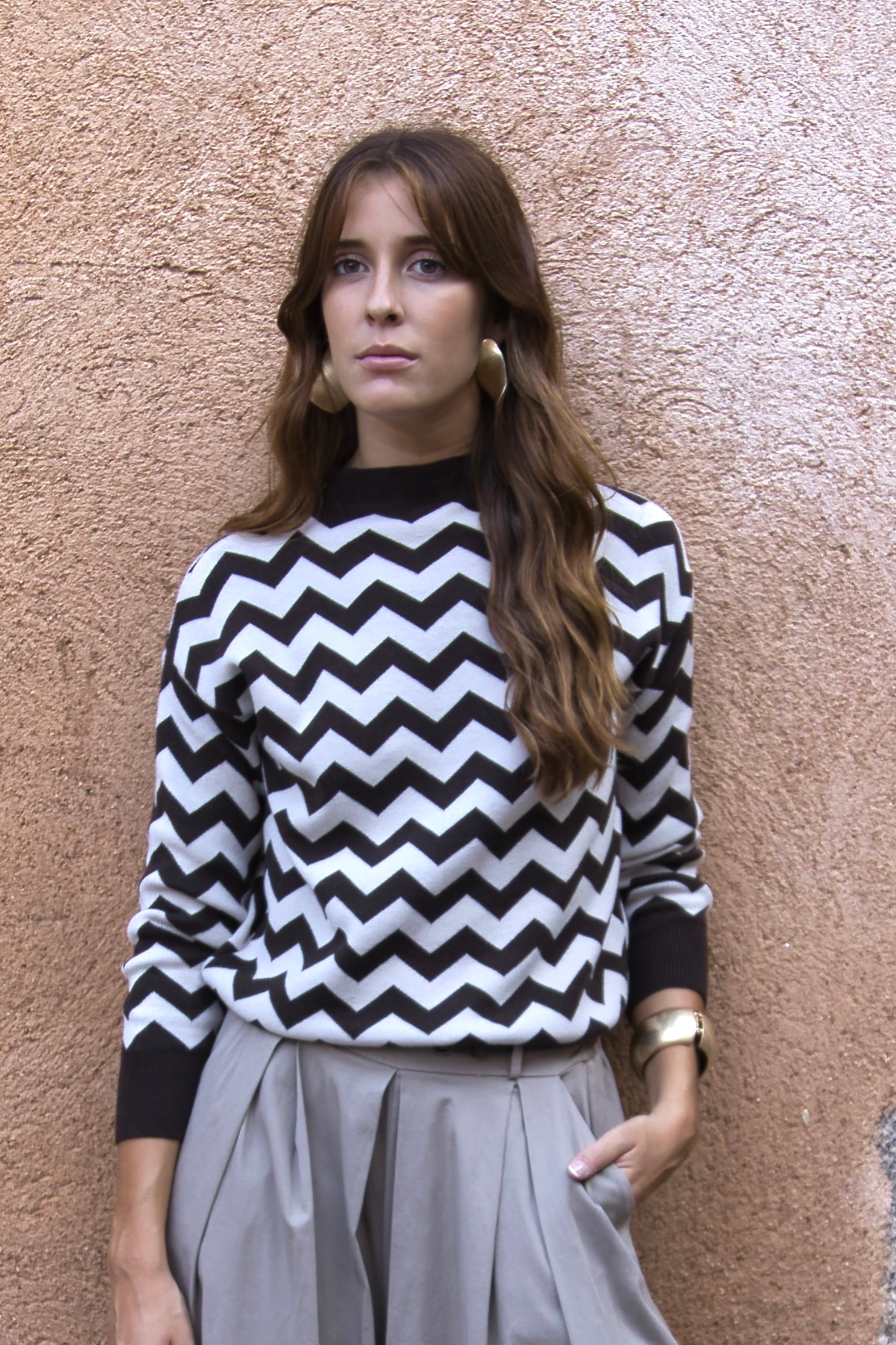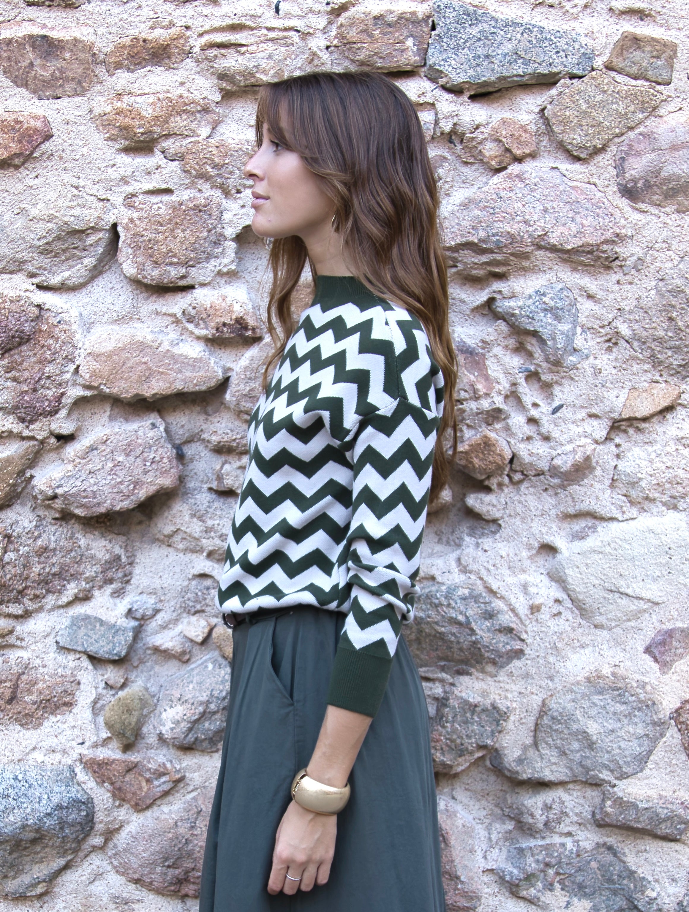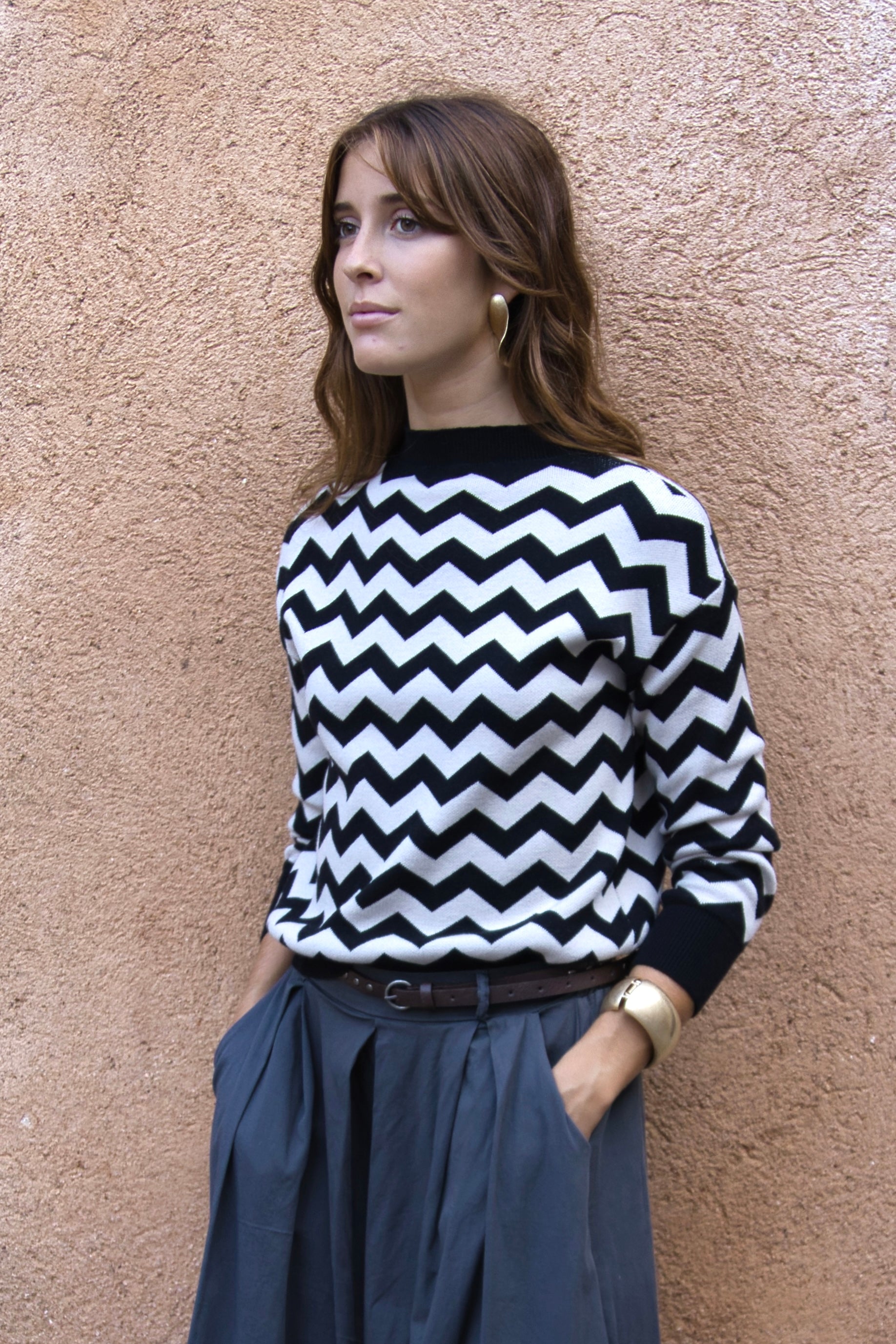 Jersey de punto con estampado zigzag en contraste, muy elástico y adaptable. Suave, cómodo y con un ajuste favorecedor gracias a su tejido que se estira con facilidad. Talla única, se adapta perfectamente desde la 36 hasta la 44.Composición:50 %viscosa