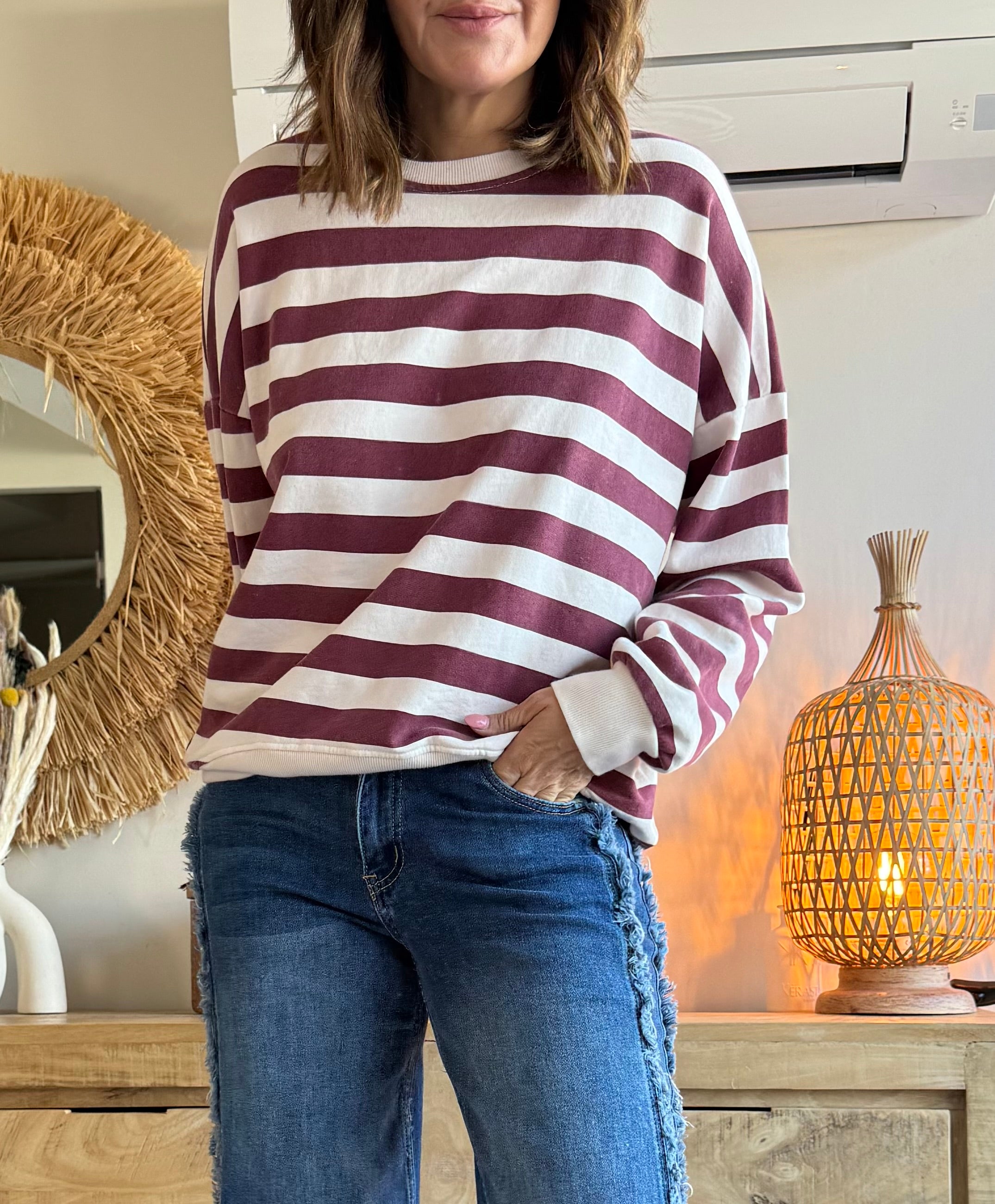 Sudadera de rayas en 100% algodón de máxima calidad, muy suave y cómoda.