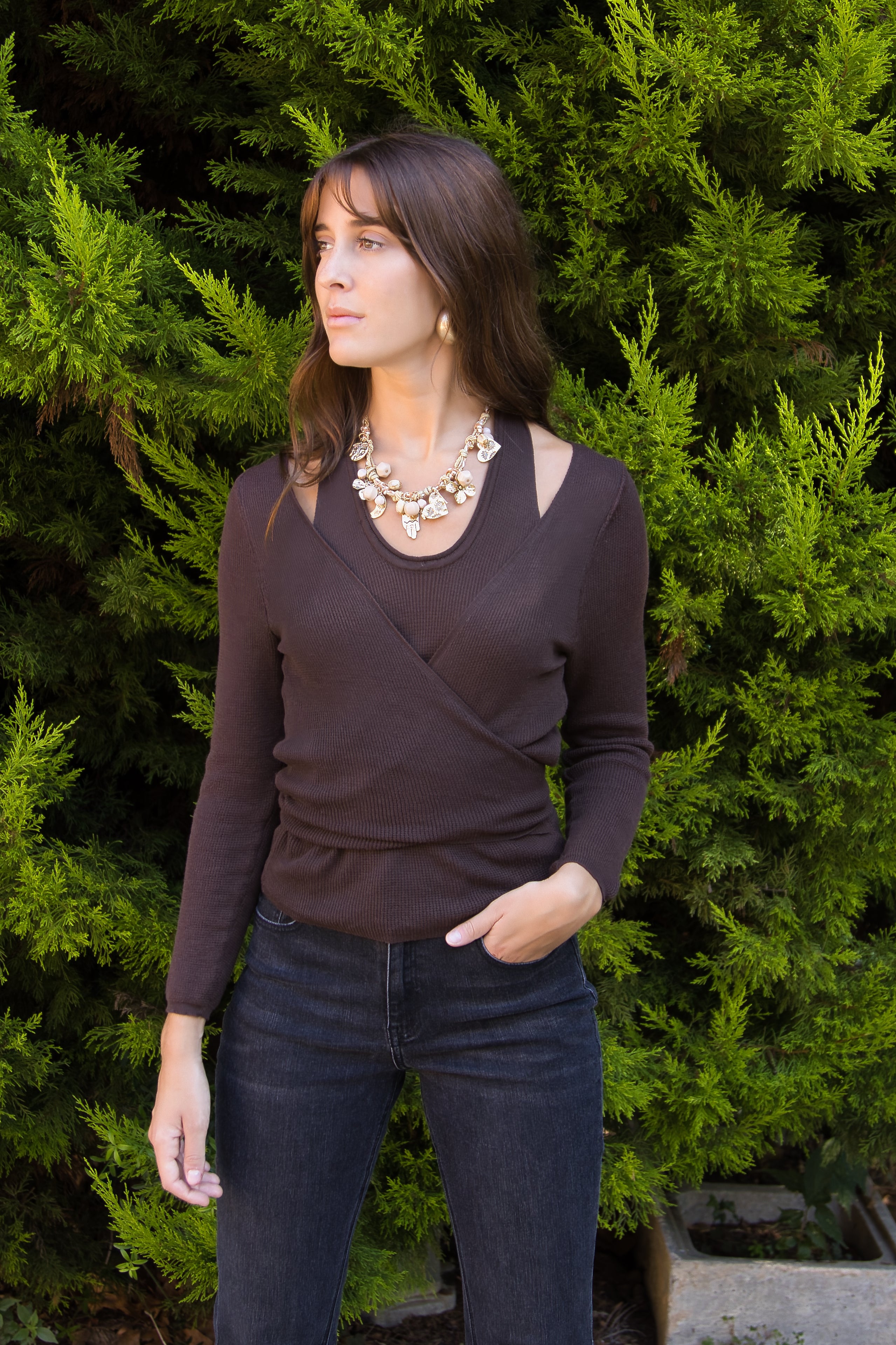 Este twinset cruzado es una prenda única y muy versátil que se adapta a tu estilo y a cada momento del día.