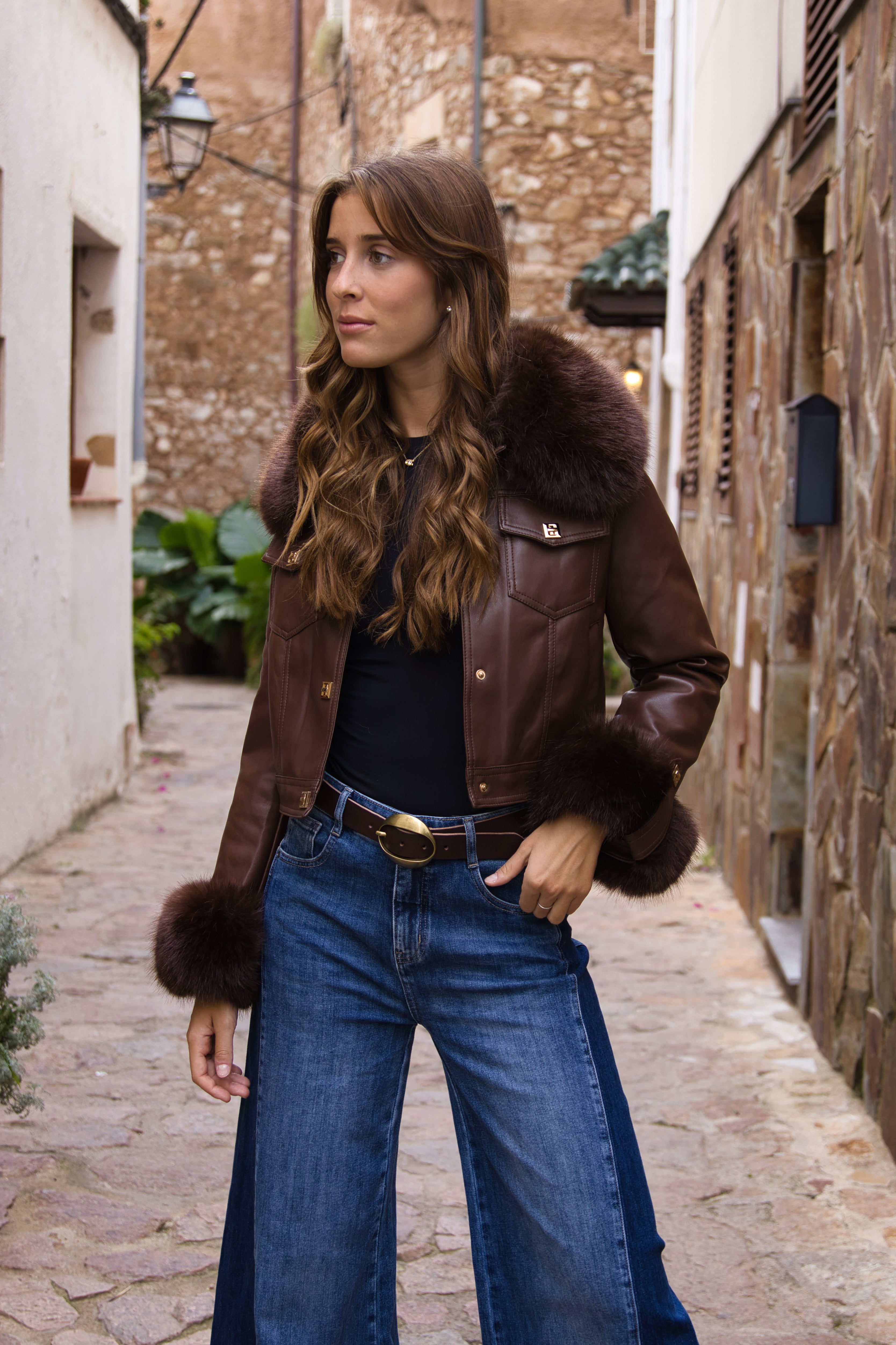 Disponible en negro y marrón, es una prenda versátil que combina tanto con looks casuales de día como con outfits más arreglados de noche.