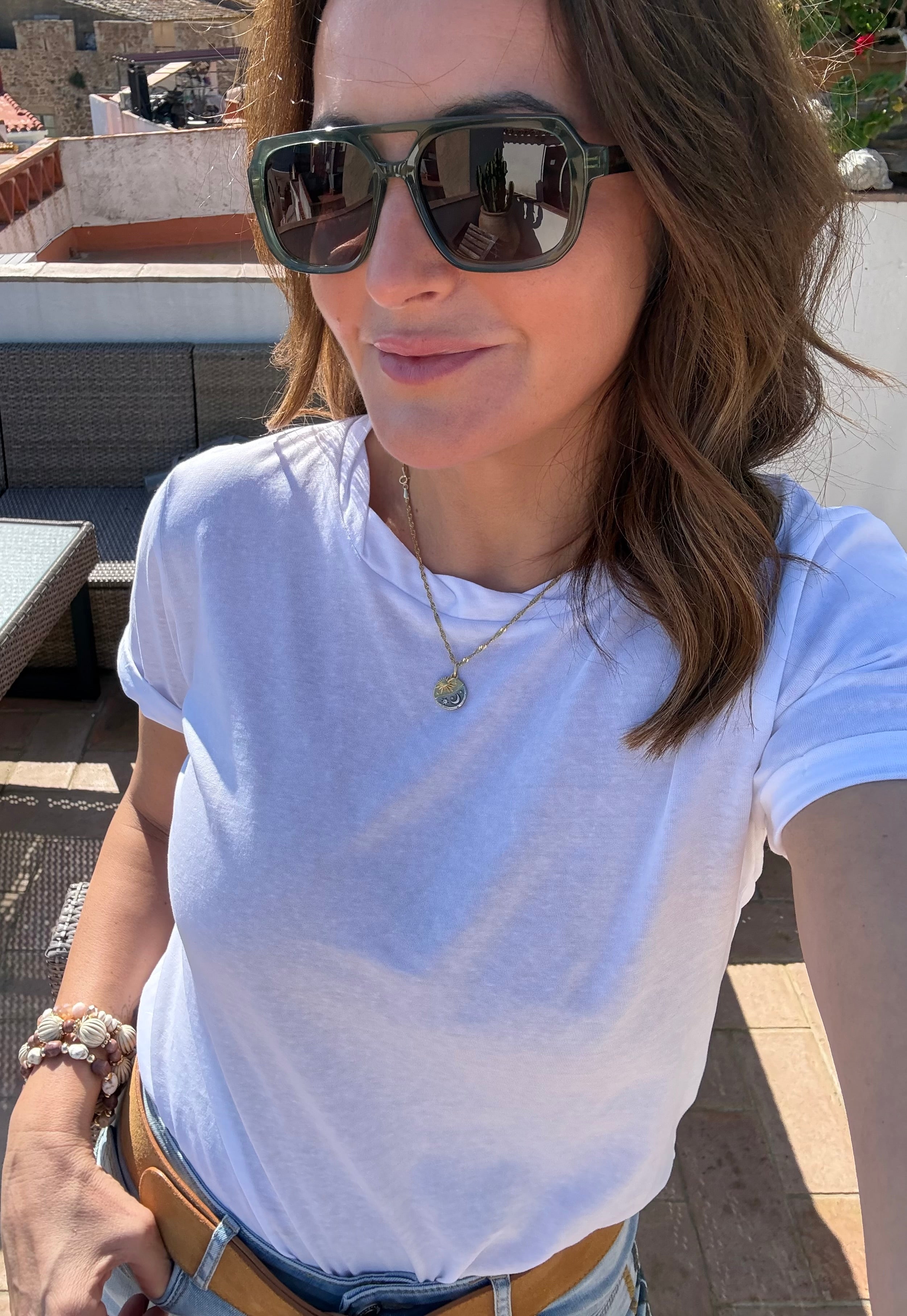 Gafas de sol en acetato de alta calidad con lentes polarizadas y diseño cuadrado marcado, elegante y atemporal. Disponibles en verde translúcido y marrón carey, dos tonos versátiles que elevan cualquier look. Cómodas, ligeras y con un estilo sofisticado perfecto para el día a día.