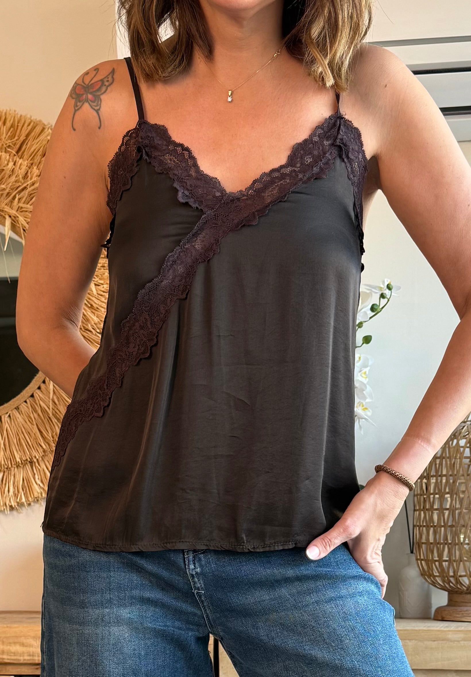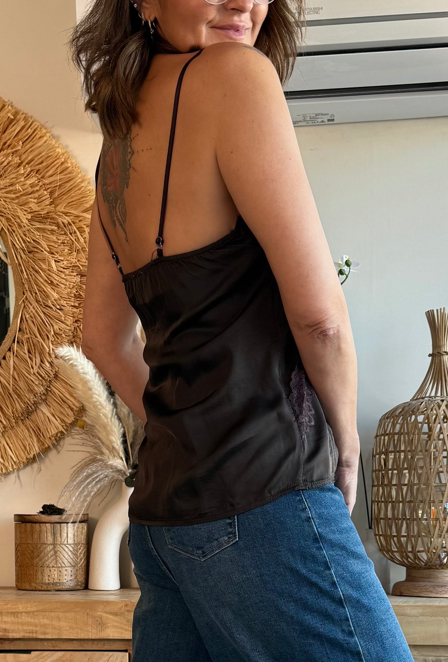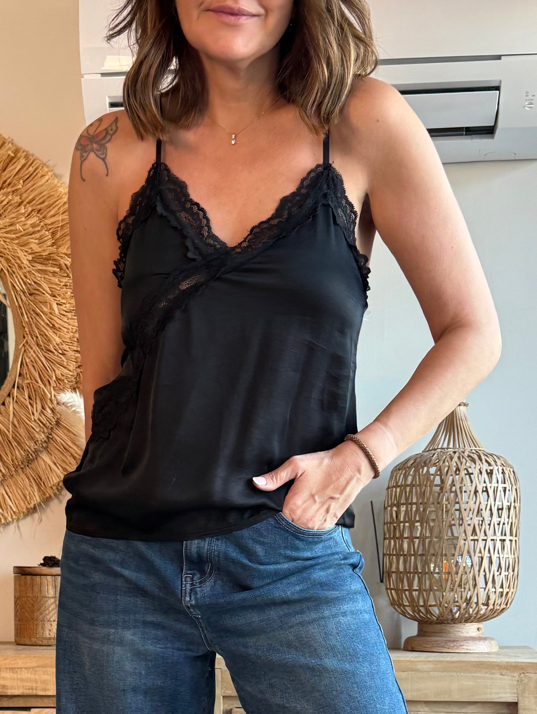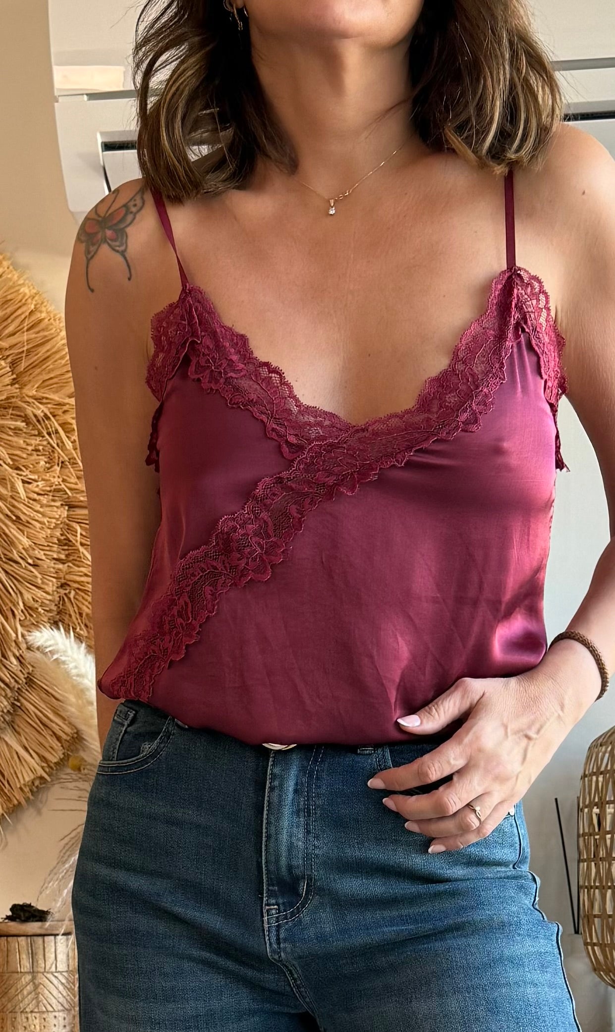 El Top Verona es ese básico lencero que transforma cualquier look sin esfuerzo. Elegante, fluido y con un brillo satinado precioso, lleva encaje cruzado delantero que estiliza muchísimo y aporta ese toque delicado y súper femenino 🤍