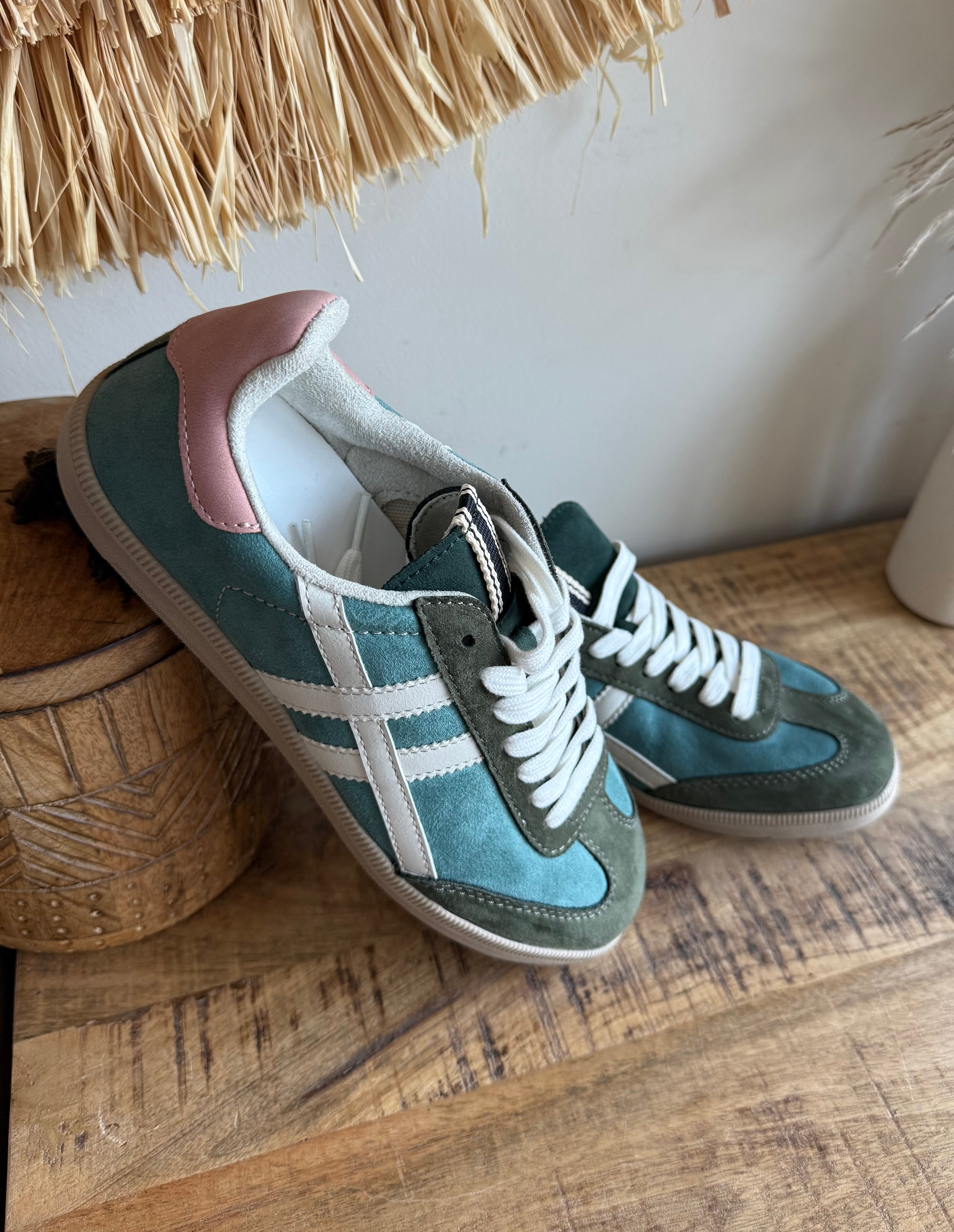 Sneakers estilo retro confeccionadas en material sintético de alta calidad con acabado tipo ante.