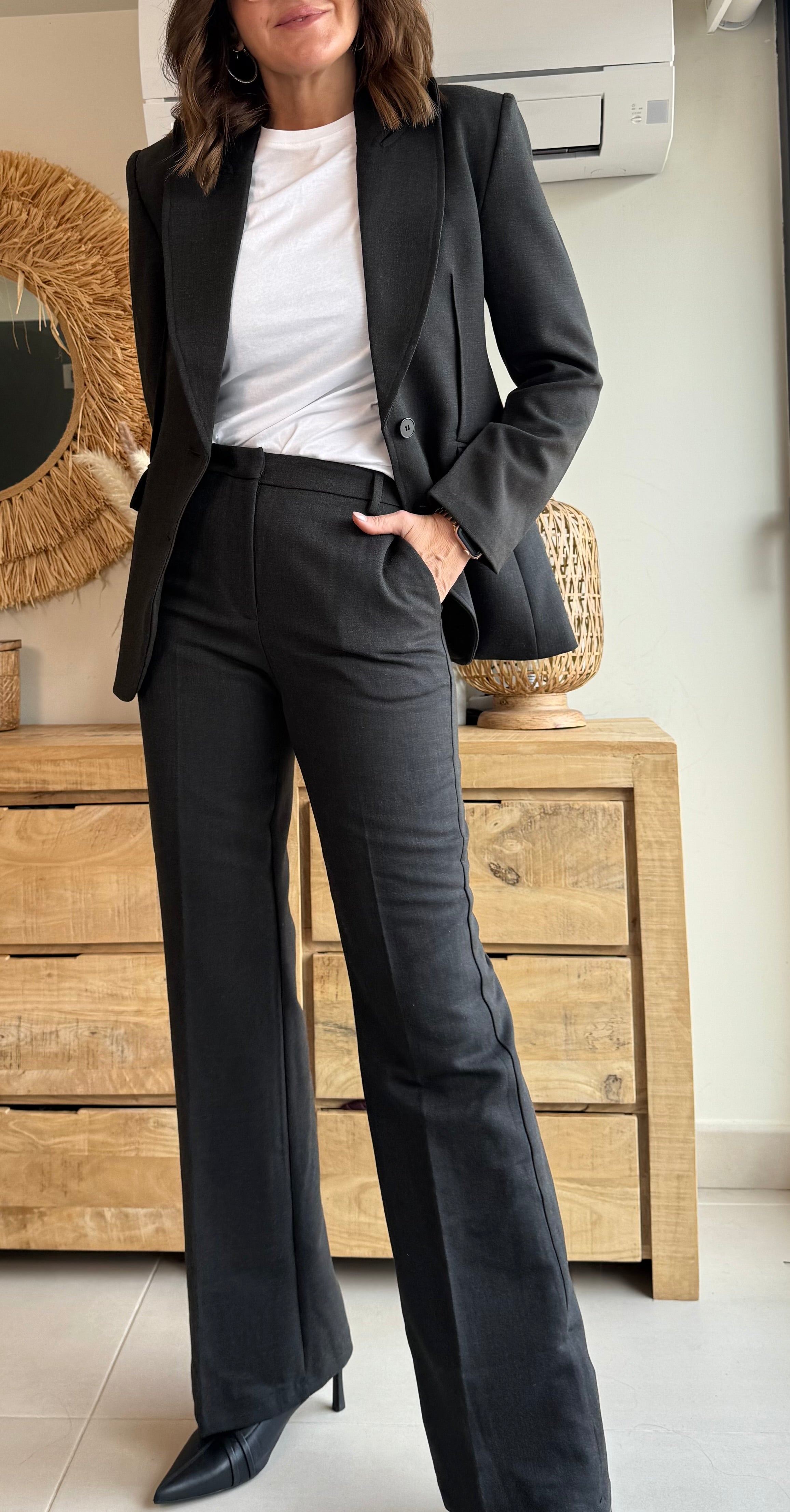 Diseñado para estilizar la pierna y alargar la silueta, es una prenda versátil que funciona tanto en looks formales como combinada con prendas más casuales.